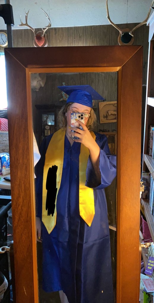 One year ago today (April 8th, 2020), my classmates and I went to our high school to pick up our caps and gowns. We also found out we would not be returning to school on April 8th. At this point, we had been in “quarantine” for almost a month. Our school, and most of the community had shut down in the middle of March. Our last day of public school was March 13th, 2020, and the last three months of our childhood was suddenly gone. That day was particularly difficult. We got to the school, and picked up my package. It contained my cap, gown, and tassel, although I still had the one they gave me earlier in the school year. It’s still in my car now. The small bag also contained my sash, but I’d have to pick up my cords and metal later.