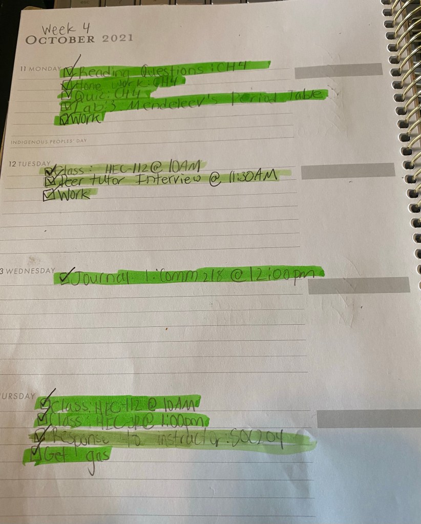 In this first photo I have completed all things required of me, and I showcase that with a check mark and a green highlighter. That way, I know that I am done with that particular task.