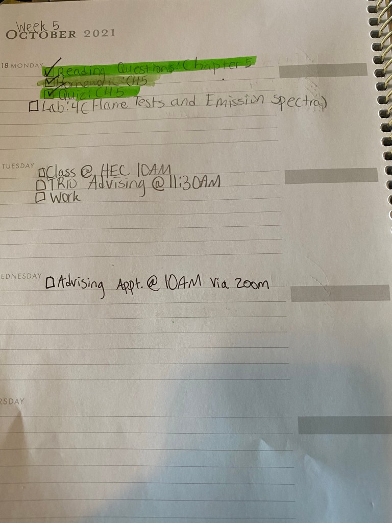 This next one is the upcoming week. As you can see I have a few of the tasks for the upcoming week done, but some of them, I still need to do.