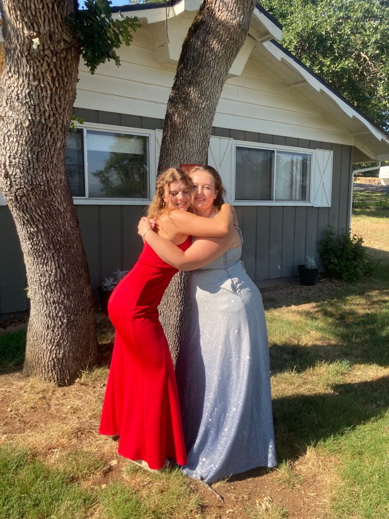 My best friend and I in our prom dresses because we didn’t get to have a senior prom in early July.
