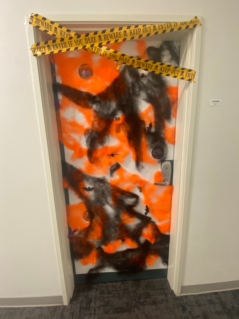 Today I stayed home and did some homework. I also decorated my apartment door with my roommate.