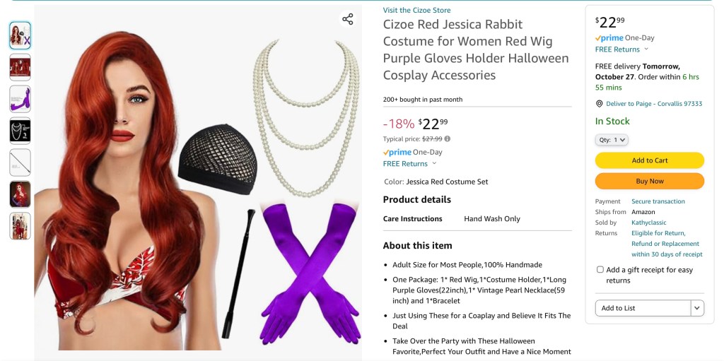 I always wanted to be Jessica Rabbit when I was younger, but now that I’m older, I was surprised by how easy it would be to recreate this costume.